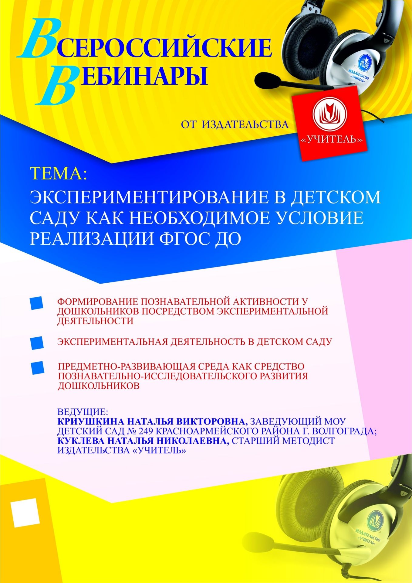 Приглашаем воспитателей ДОО, старших воспитателей, специалистов дошкольного образования принять участие в offline-вебинаре «Экспериментирование в детском саду как необходимое условие реализации ФГОС ДО».