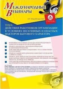 Международный вебинар "Действия работников организации в условиях негативных и опасных факторов бытового характера"