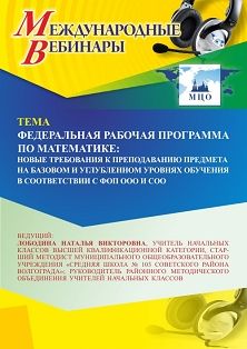Международный вебинар Федеральная рабочая программа по математике: новые требования к преподаванию предмета на базовом и углубленном уровнях обучения в соответствии с ФОП ООО и СОО