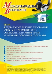 Международный вебинар Федеральные рабочие программы учебных предметов ООО: содержание, планируемые результаты освоения программ