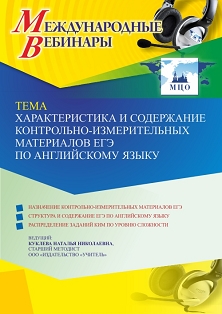 Международный вебинар Характеристика и содержание контрольно-измерительных материалов ЕГЭ по английскому языку