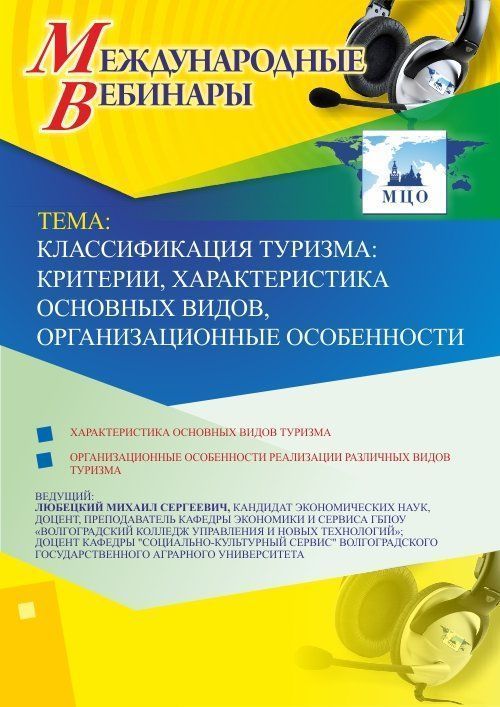 Международный вебинар "Классификация туризма: критерии, характеристика основных видов, организационные особенности"