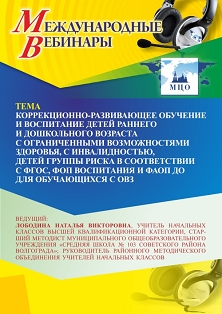 Международный вебинар Коррекционно-развивающее обучение и воспитание детей раннего и дошкольного возраста с ограниченными возможностями здоровья, с инвалидностью, детей группы риска в соответствии с ФГОС, ФОП воспитания и ФАОП ДО для обучающихся с ОВЗ