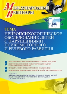 Международный вебинар Нейропсихологическое обследование детей с нарушениями психомоторного и речевого развития
