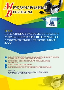 Международный вебинар Нормативно-правовые основания разработки рабочих программ в ОО в соответствии с требованиями ФГОС
