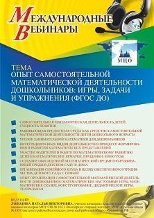 Международный вебинар Опыт самостоятельной математической деятельности дошкольников: игры, задачи и упражнения (ФГОС ДО)