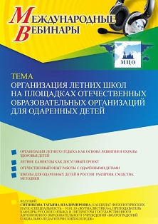 Международный вебинар Организация летних школ на площадках отечественных образовательных организаций для одаренных детей