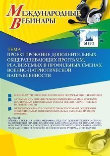 Международный вебинар Проектирование дополнительных общеразвивающих программ, реализуемых в профильных сменах военно-патриотической направленности