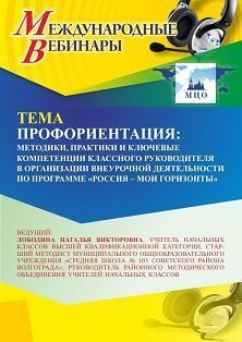 Международный вебинар Профориентация: методики, практики и ключевые компетенции классного руководителя в организации внеурочной деятельности по программе “Россия – мои горизонты”