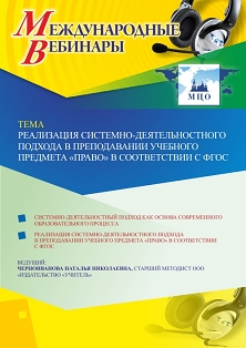 Международный вебинар Реализация системно-деятельностного подхода в преподавании учебного предмета “Право” в соответствии с ФГОС