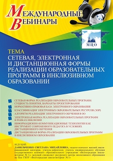 Международный вебинар Сетевая, электронная и дистанционная формы реализации образовательных программ в инклюзивном образовании