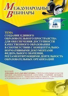 Международный вебинар Создание единого образовательного пространства для обеспечения доступности качественного образования в соответствии с концептуально-нормативными документами федерального значения, регламентирующими деятельность ОО