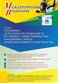 Международный вебинар Специфика деятельности специалиста по связям с общественностью в различных сферах коммуникативного пространства