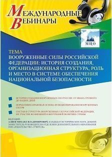 - Курс Международный вебинар "Вооруженные Силы Российской Федерации: история создания, организационная структура, роль и место в системе обеспечения национальной безопасности" | Маркетплейс онлайн образования Edwica