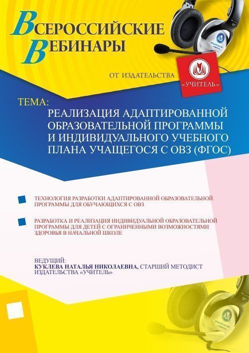 Приглашаем руководителей образовательных организаций, педагогов и специалистов общеобразовательных школ, педагогов и специалистов коррекционных образовательных учреждений, заместителей и руководителей структурных подразделений, занимающиеся вопросами инклюзивного образования в образовательной организации принять участие в offline-вебинаре «Реализация адаптированной образовательной программы и индивидуального учебного плана учащегося с ОВЗ (ФГОС)».