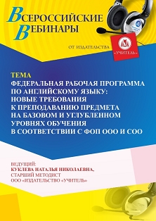 Вебинар Федеральная рабочая программа по английскому языку: новые требования к преподаванию предмета на базовом и углубленном уровнях обучения в соответствии с ФОП ООО и СОО