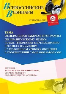 Вебинар Федеральная рабочая программа по французскому языку: новые требования к преподаванию предмета на базовом и углубленном уровнях обучения в соответствии с ФОП ООО и ФОП СОО