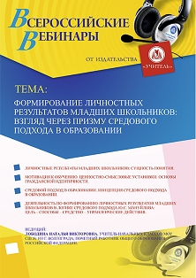 Вебинар Формирование личностных результатов младших школьников: взгляд через призму средового подхода в образовании