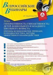- Курс Вебинар Гиперактивность (гипоактивность) детей дошкольного и младшего школьного возраста: причины возникновения, признаки, психодиагностика, методы эффективного взаимодействия | Маркетплейс онлайн образования Edwica