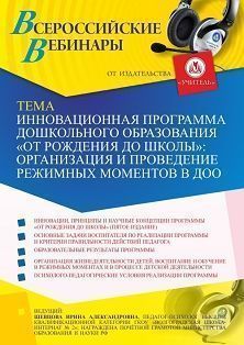 Вебинар Инновационная программа дошкольного образования ОТ РОЖДЕНИЯ ДО ШКОЛЫ: организация и проведение режимных моментов в ДОО