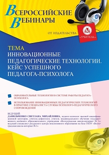 Вебинар Инновационные педагогические технологии. Кейс успешного педагога-психолога