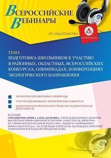 Вебинар Подготовка школьников к участию в районных, областных, всероссийских конкурсах, олимпиадах, конференциях экологического направления