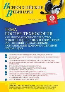 Вебинар Постер-технология как инновационное средство развития личностных и творческих достижений дошкольников и организации доброжелательной среды в ДОО