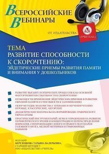 Вебинар Развитие способности к скорочтению: эйдетические приемы развития памяти и внимания у дошкольников