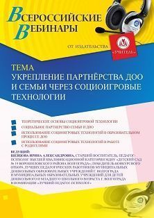 Вебинар Укрепление партнёрства ДОО и семьи через социоигровые технологии