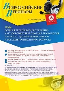 Вебинар Водная терапия (гидротерапия) как здоровьесберегающая технология в работе с детьми дошкольного и младшего школьного возраста