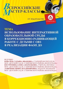 Всероссийский мастер-класс Использование интерактивной образовательной среды в коррекционно-развивающей работе с детьми с ОВЗ в реализации ФАОП ДО